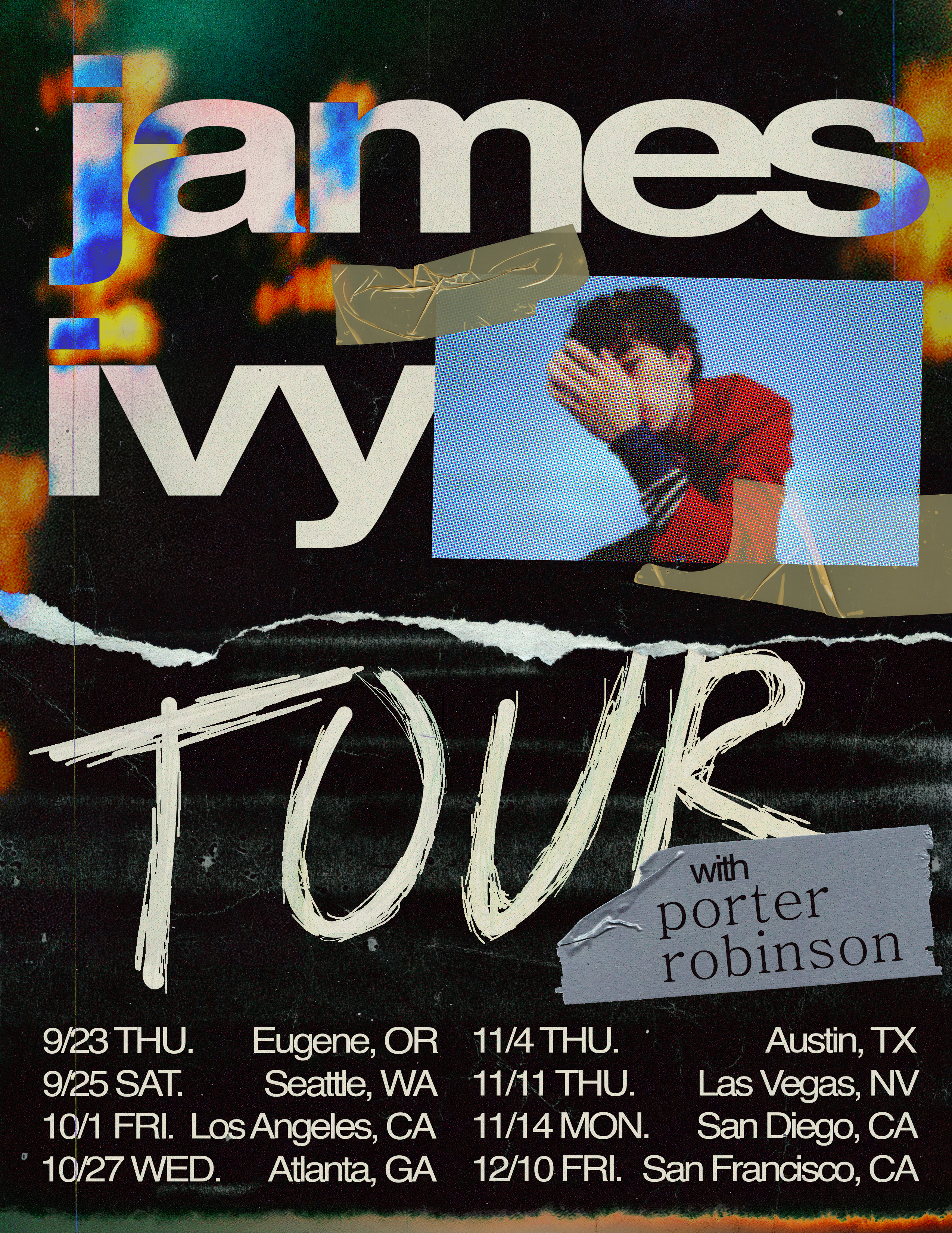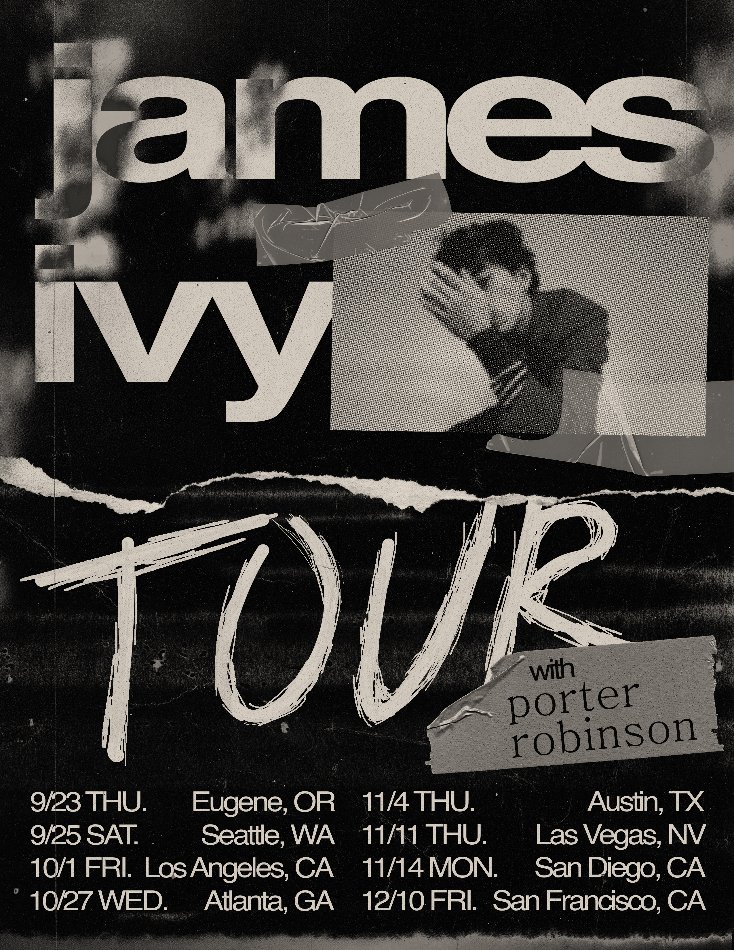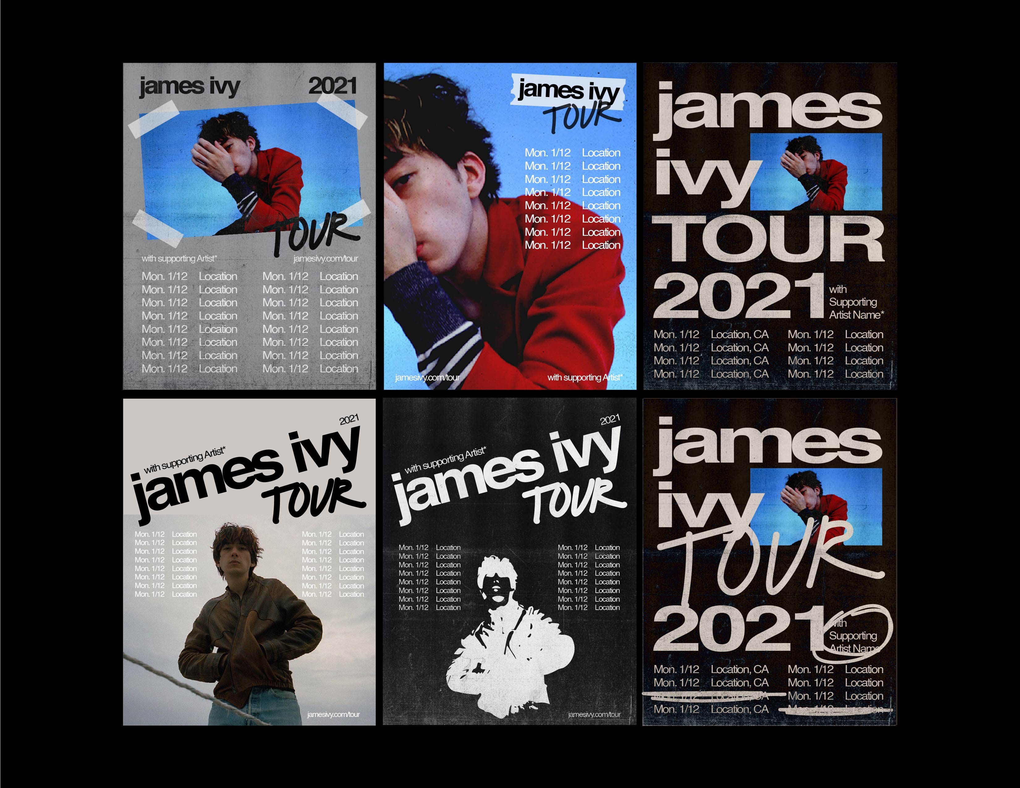 Tour posters inspired by James Ivy’s electronica and nostalgic alt-rock sound.