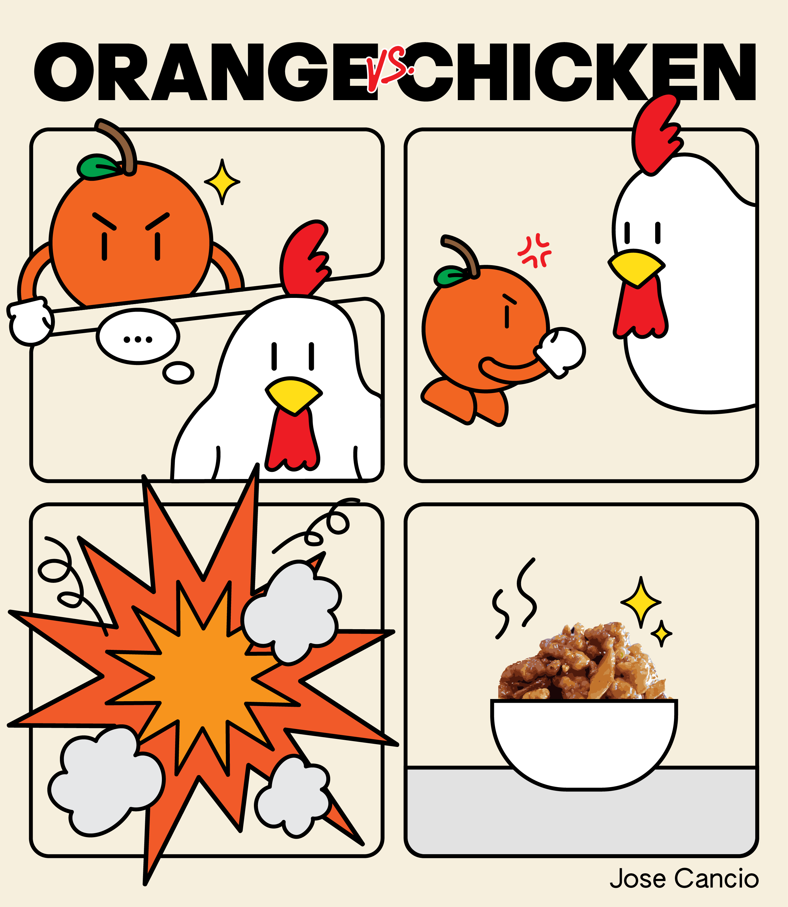 A rivalry between an orange and a chicken results into a delicious entrée.